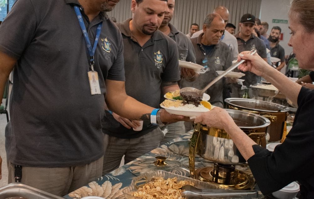 No início de agosto, o NEAM, em parceria com a AFPUC, promoveu uma feijoada especial em homenagem aos funcionários da manutenção da Prefeitura da PUC e aos auxiliares de serviços gerais.