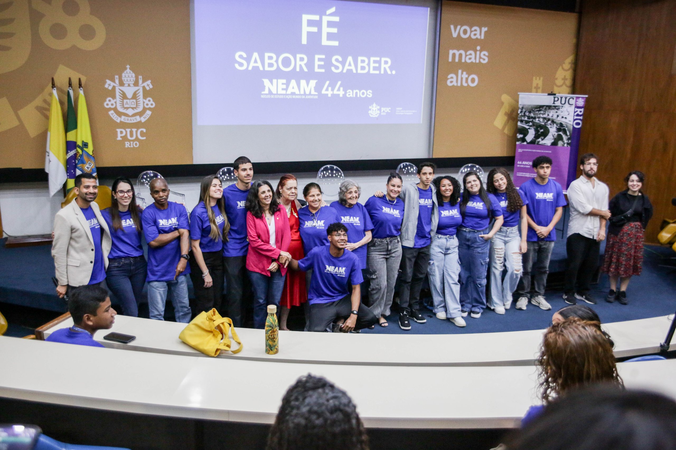 O NEAM completou 44 anos de atuação em setembro, celebrando a data com momentos de fé, memória, cultura e aprendizado. A programação começou no dia 10/09 com a Missa de Ação de Graças na Igreja Sagrado Coração de Jesus, presidida pelo Pe. Miguel Martins, S.J., Vice-Reitor da PUC-Rio, e contou com a presença de professores, parceiros históricos e jovens das comunidades, em uma celebração marcada pelo tema “Fé, Sabor e Saber”.
